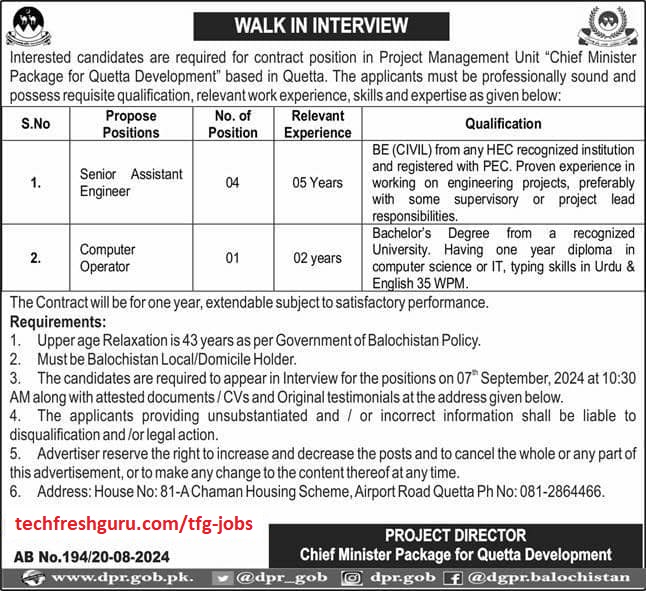 Applying for jobs under the Chief Minister’s Package for Quetta Development requires attention to detail and timely action. By staying informed, preparing thoroughly, and following the correct procedures, you can increase your chances of securing a job through this initiative. This package is not just an opportunity for employment but also a chance to contribute to the development and prosperity of Quetta. Good luck with your application!