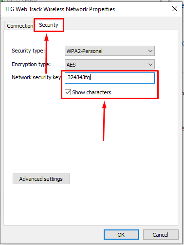 5. Navigate to the “Security” tab and check the box next to “Show characters” to reveal the Wi-Fi password.