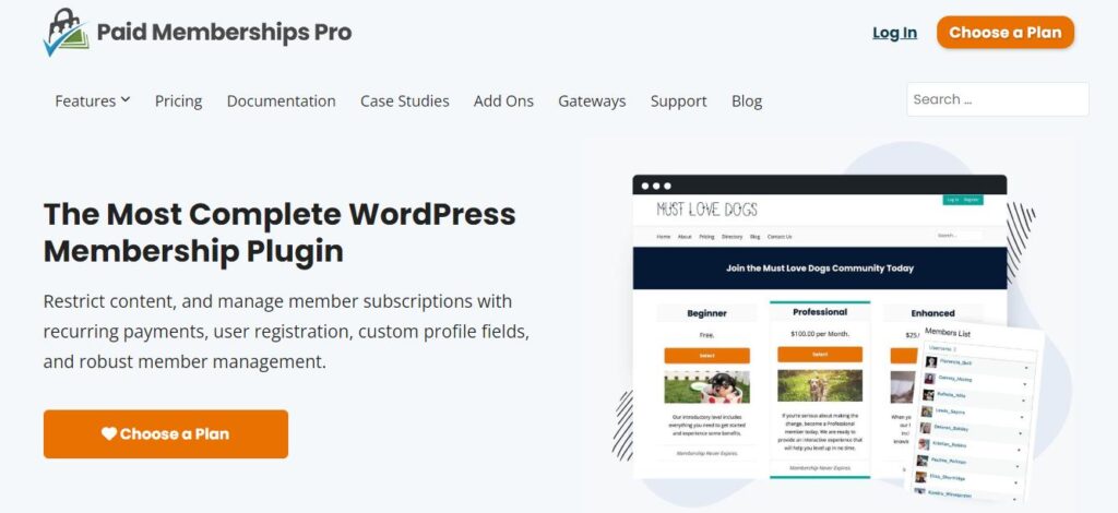 Paid Memberships Pro is a flexible and extensible membership plugin that caters to a variety of needs. It offers features such as content dripping, trial periods, and recurring payments. The plugin’s developer-friendly nature allows for easy customization and integration with other plugins and themes.